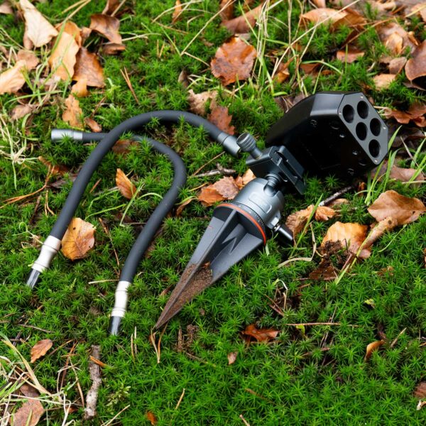 Made with carbon fibre-reinforced PET-G, the ground spike is a durable but featherlight mounting solution that is compact and easy to carry into the field.